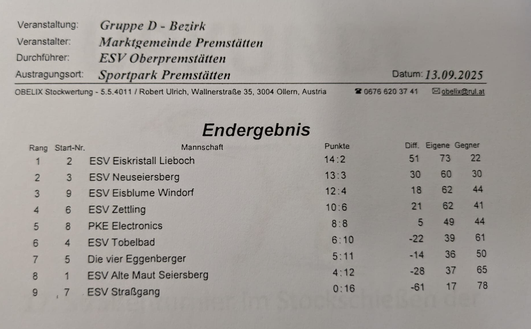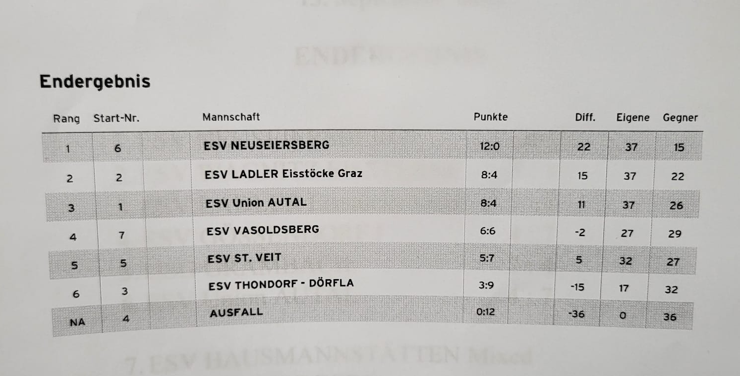 mit nur einer Niederlage gegen den ESV Eisstöcke Ladler 1 konnten wir die nachmittags Gruppe vom ABO Turner des ESV Eisschwalbe Berndorf gewinnen.