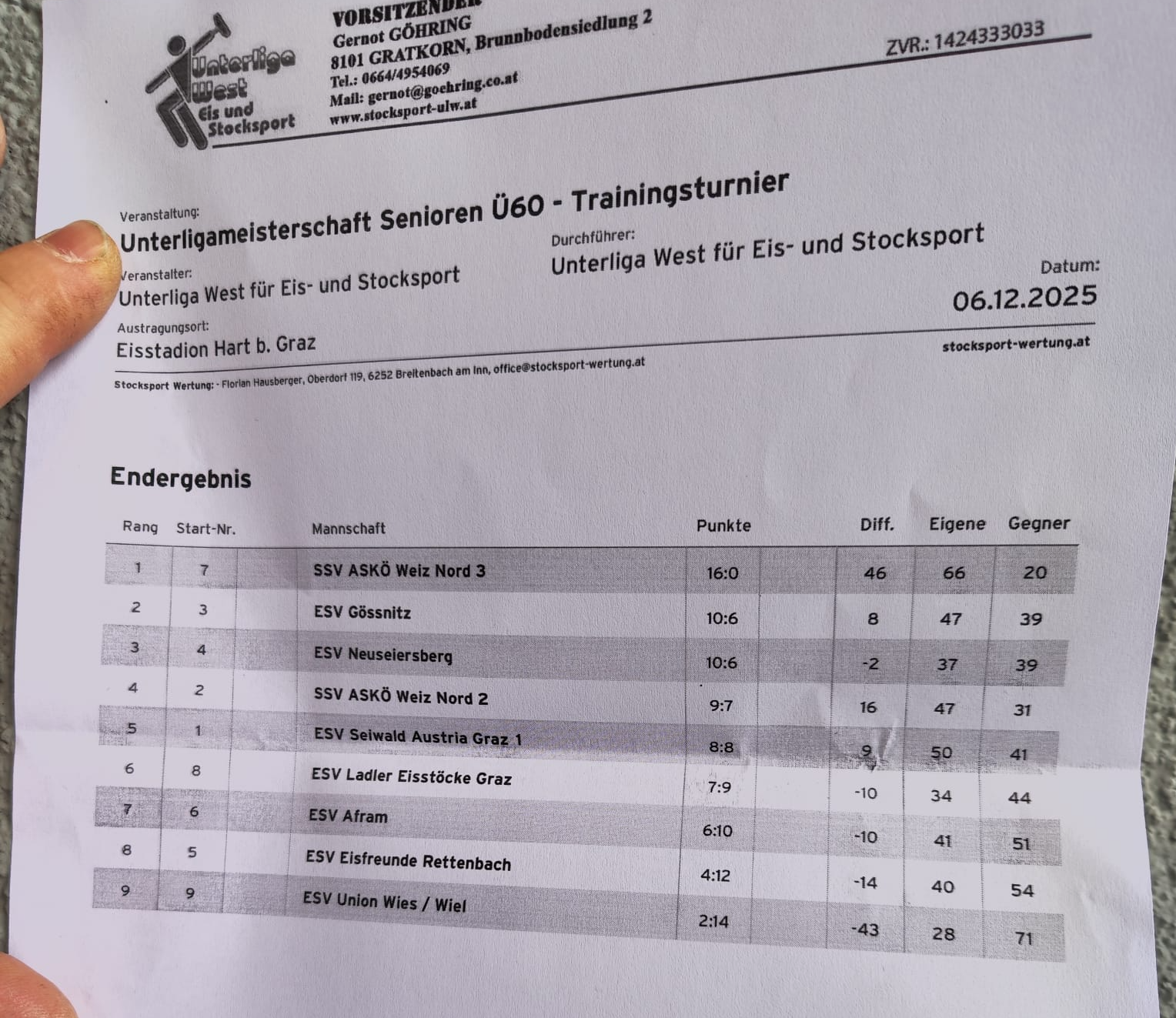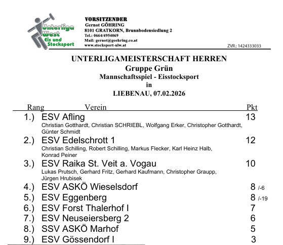 mit nur einer Niederlage gegen den ESV Eisstöcke Ladler 1 konnten wir die nachmittags Gruppe vom ABO Turner des ESV Eisschwalbe Berndorf gewinnen.