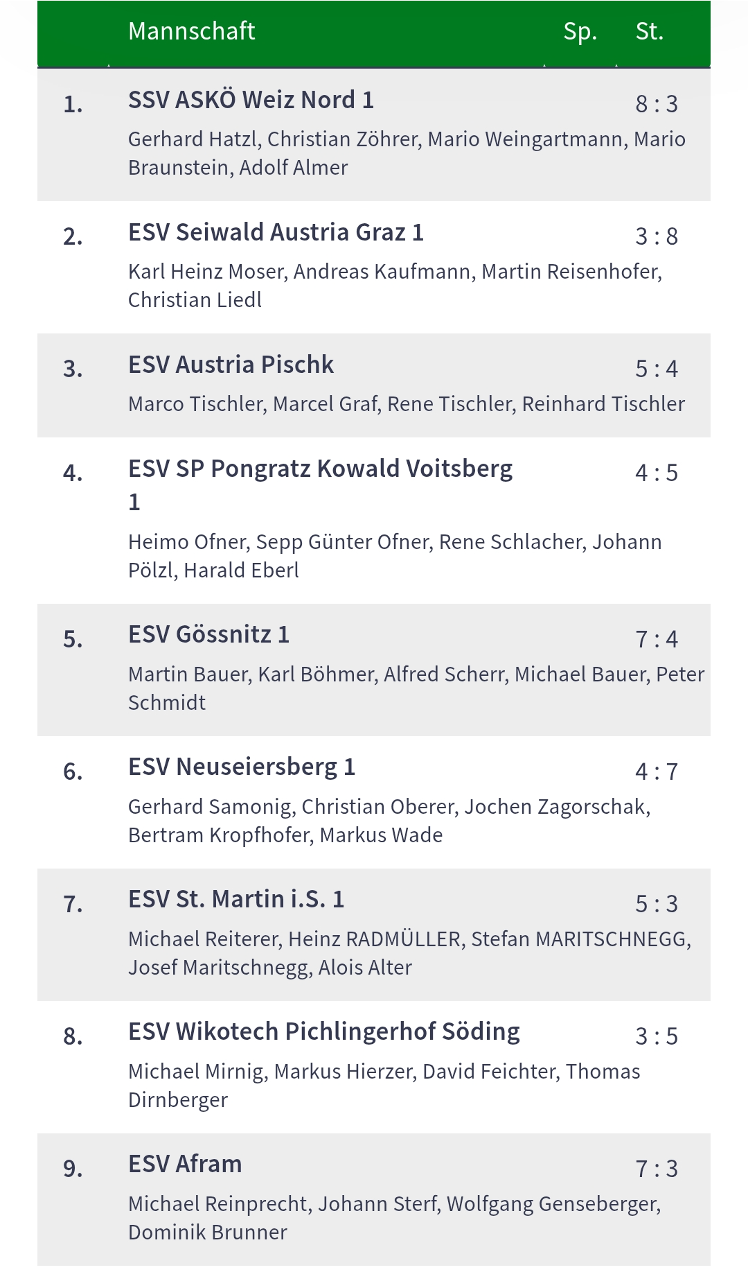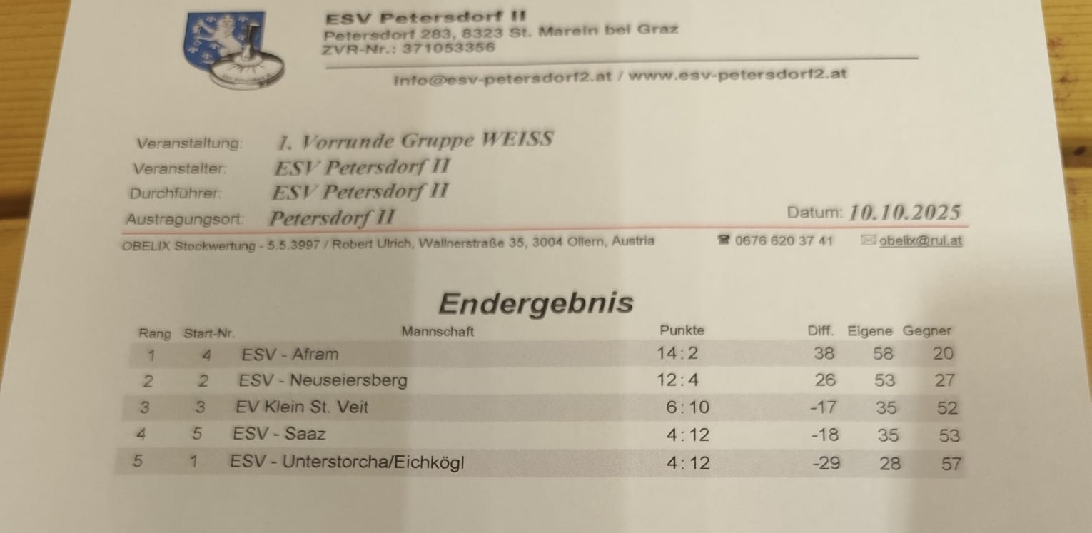 mit einer guten Leistung konnten wir das Auswärtsspiel beim ESV Autal mit 8:2 gewinnen. in der nächsten runde kommt es zum Retourspiel bei uns in Seiersberg